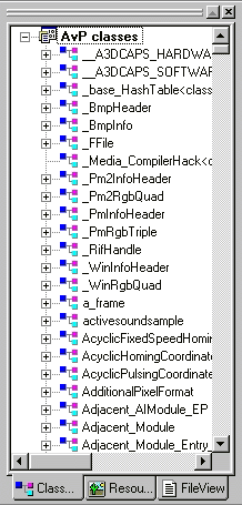 This cool tab retrieves all your classes, structures, functions and global variables from your project. It's really interesting when you need to find definitions on a huge project such as AvP: just select a name and the concerned file will open directly, at the line of the desired definition.