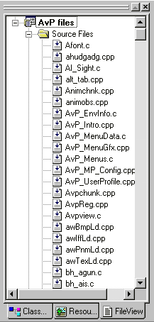 The "Source files" are just the C / C++ / Assembly code definitions of your project. In AvP, it will refers to all defined objects, like weapons, players...